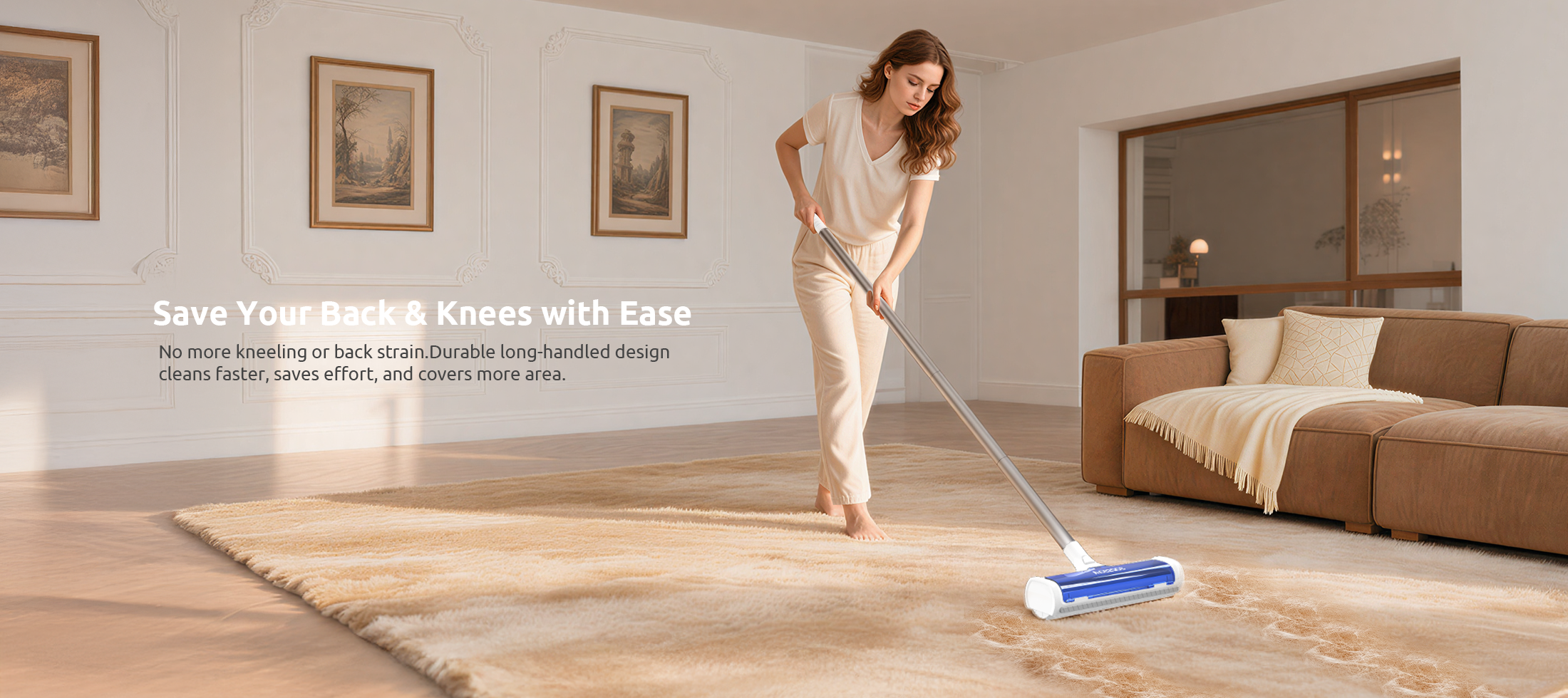- Professionally Designed for Carpet Pet Hair Removal - No Fabric Damage, No Bending or Kneeling- Say goodbye to kneeling on the floor with a ultra-short handheld pet hair remover! Equipped with three adjustable lengths up to 5 feet, you can clean while standing; You can adjust the length according to your height